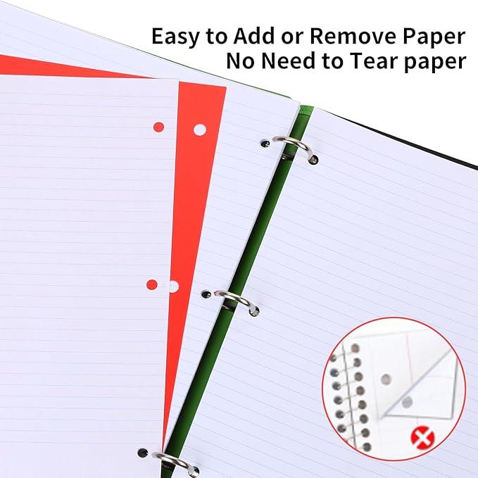 - 【Notebook with Folders】This is a brand-new designed useful and functional binder notebook. This notebook's biggest feature is that the internal paper and dividers can rotate 360 degrees. This college-ruled notebook works like a binder, allowing you to add and remove pages easily. You can fold it back like a spiral notebook and lay flat writing.