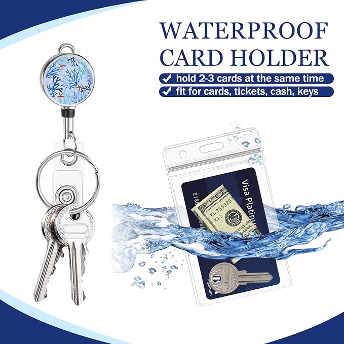 - Novelty Design: This necklace ID badge lanyard and retractable badge reel features a captivating design inspired by the unique patterns of seaweed. The organic and graceful aesthetic of the seaweed pattern adds a touch of natural beauty to the lanyard, making it a stylish and functional accessory for carrying ID badges. Package Included: ID lanyard retractable reel x2, thickened waterproof ID holders x2