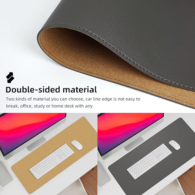 - Elevate Your Workspace: Our reversible desk pad is designed to complement any office or home desk with its premium materials and elegant black thread stitching. The natural cork base provides extra grip to keep your desk mat in place.