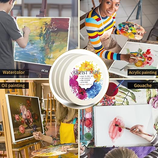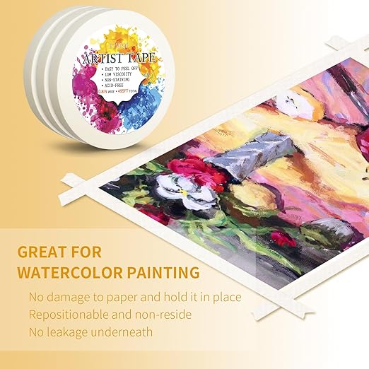 - 【Easy Peeling】The artist tape for watercolor paper is made of crepe paper, it can be torn apart by hand with gentle force. The white tape with low viscosity features that is easy to peel off without any damage to the watercolor paper. More efficient and convenient for painter. Please don't stick/peel this tape on/off paper with a intended strong strength.