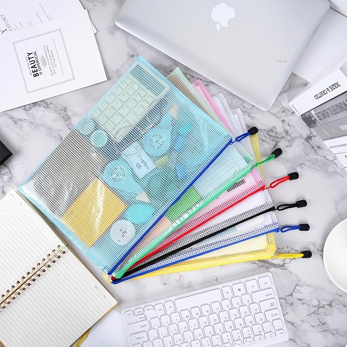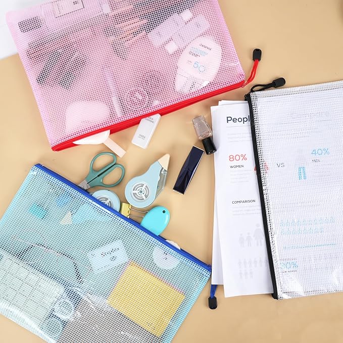 EOOUT 12pcs Mesh Zipper Pouch for Organizing, A4 Letter Size Zipper Storage Bags, Multicolor Plastic File Pouch Multipurpose for Classroom Organization Travel Storage Board Game Storage