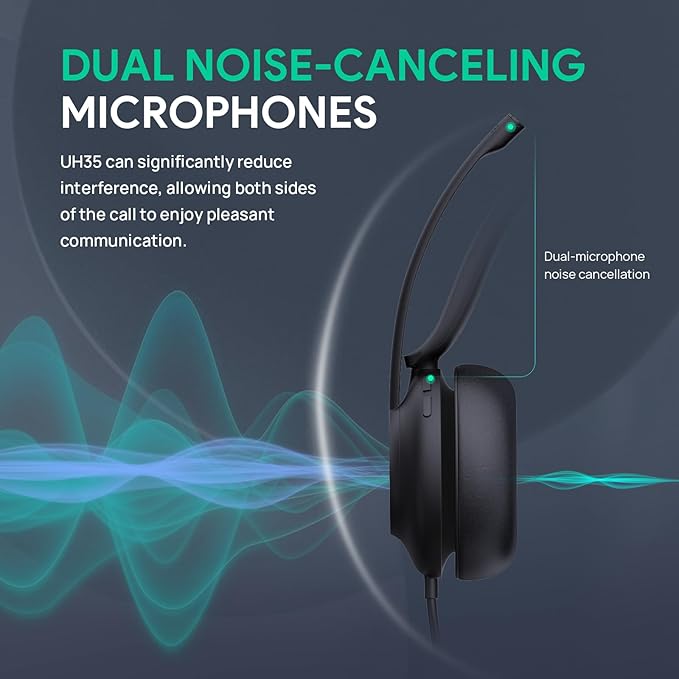 - User-friendly features: UH35 allows mute by lifting the mic-boom or by pressing the mute bu tton. The boom's 300-degree rotation allows for left or right ear wear. This convenient and flexible design will let you feel more at ease when communicating.