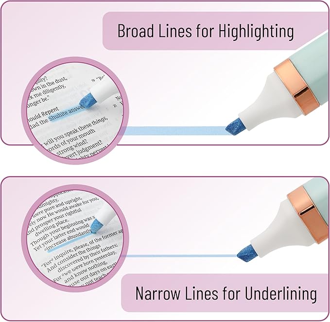 - These highlighters feature a chisel tip, allowing for both broad highlighting and fine underlining, making them versatile for various uses.