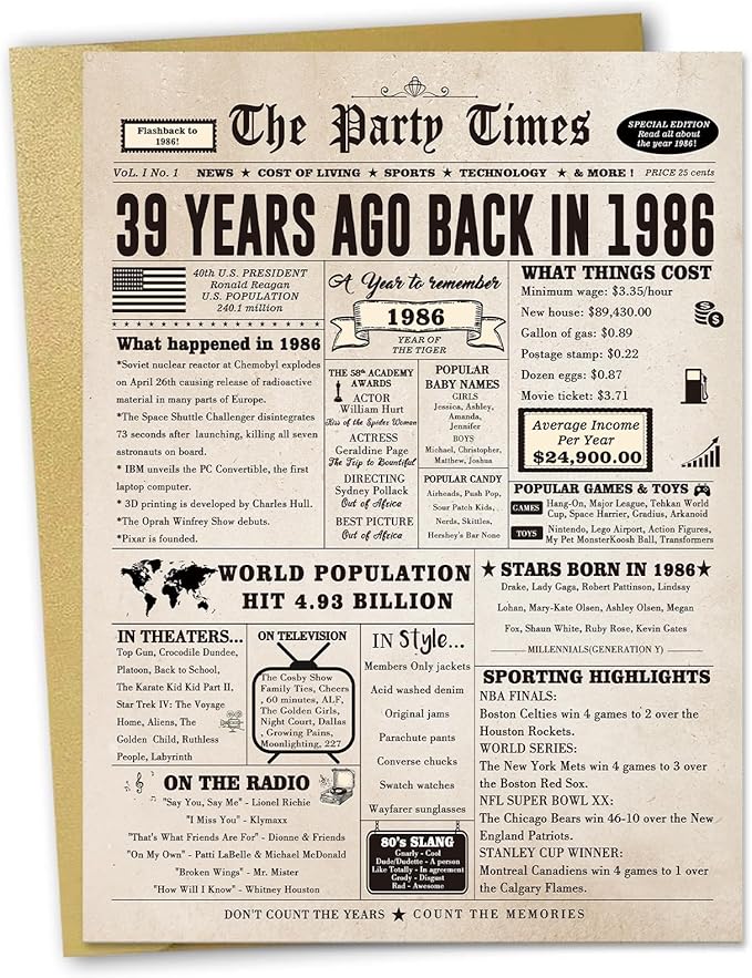 - 【Product Size】A 10.6 x 7.9 inches 39 year old birthday card stands out for its oversized size. It comes with an envelope for easy mailing or gifting.