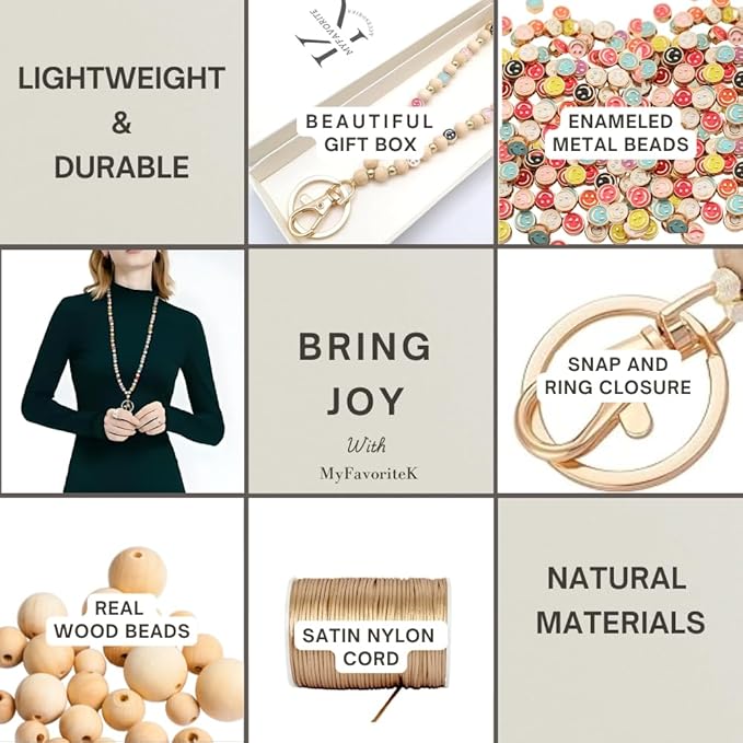 - 🥰 Bright & Cheerful Design: Features stylish and vibrant handcrafted wooden beads with soft high-quality metal smile faces and key chain, turning everyday wear into a fun and happy statement.