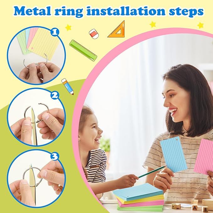 - Package includes: You will get 200Pcs Colored Index Cards with 4 Rings, including 4 different colors, 50 pieces of each color