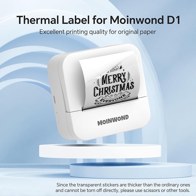 - Self-Adheive Transparent Thermal Paper: Compatible with D1 sticker printer. Size: Width 2.08"(53mm) x Diameter 0.98" (25mm), Length:9.8ft (3m). This remarkable feature ensures a seamless and efficient printing experience, allowing you to unleash your creativity without limitations.