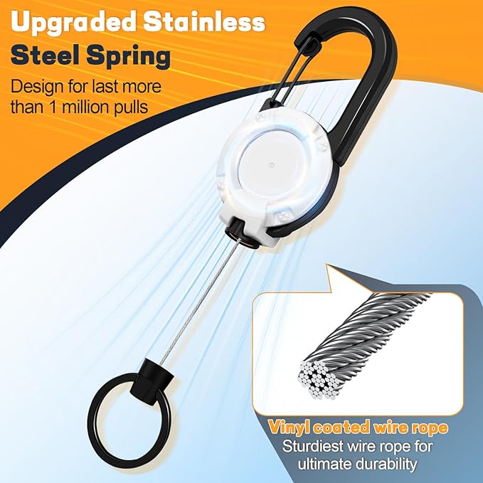- Convenient: The retractable keychain designs with a durable carabiner which can be fixed to the belt, backpack or bag. 60cm retractable reel cord is convenient to move your keys easily