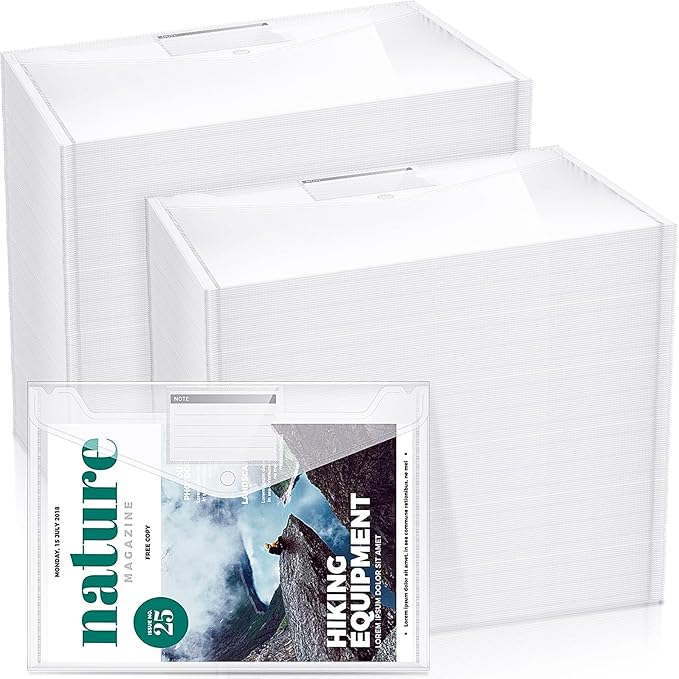 - 100 Pack Envelopes: you will receive 100 piece clear envelope folders with button closure, enough quantity to organize your files to meet your daily needs, you can also share with your friends and colleagues, keep the files organized and work desktop clean