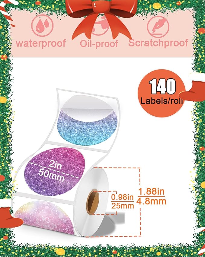 - [Specifications]: Wonlabel Round thermal labels with the size: 1.96''×1.96'' (140 Labels/1 Roll, White),Paper tube diameter:0.98"(25mm)