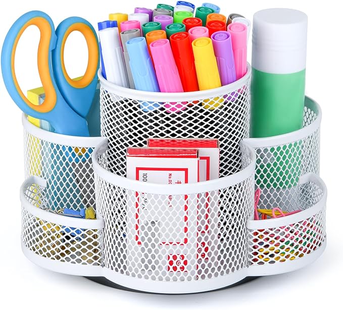 - 【7 COMPARTMENTS 】: This office supplies has 7 compartments of different heights can storgage pencils, markers, scissors, sticky notes, notebooks, paper clips.
