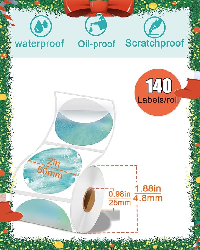 - [Specifications]: Wonlabel Round thermal labels with the size: 1.96''×1.96'' (140 Labels/1 Roll, Foggy Field),Paper tube diameter:0.98"(25mm)
