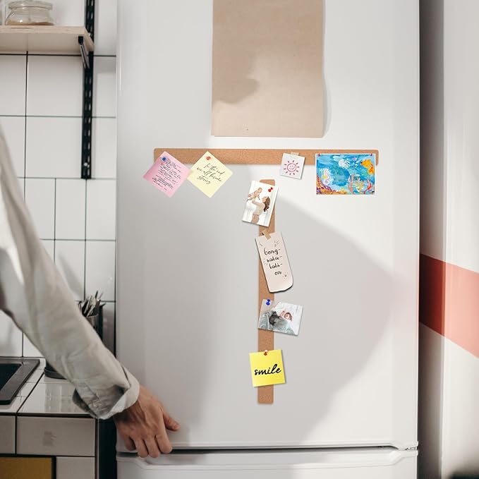 - 【EASY TO CUT & HANG】 With its flexible and easy-to-cut design, our corkboard bulletin bar strip can be easily customized to fit any size or shape you need, or connect more strips to make an extra-long one. It's also effortless to install, making it perfect for DIY projects and home decor.