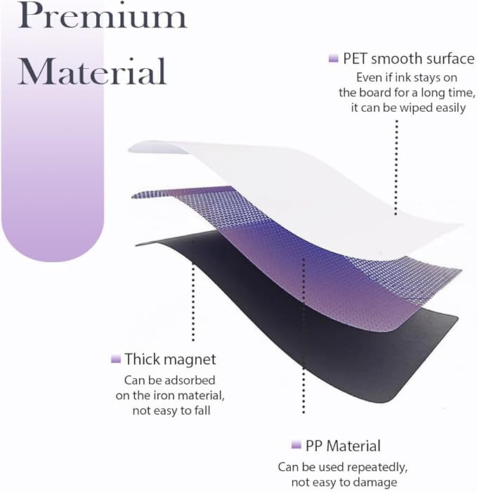 - Full Magnet Back Design:The entire back of the dry erase board is covered in magnetic material, make it better adsorbed to the magnetic logistics surface, more firm and smooth. And you can tailor the magnetic board to your needs, each part of the cut out can be adsorbed to the magnetic surface
