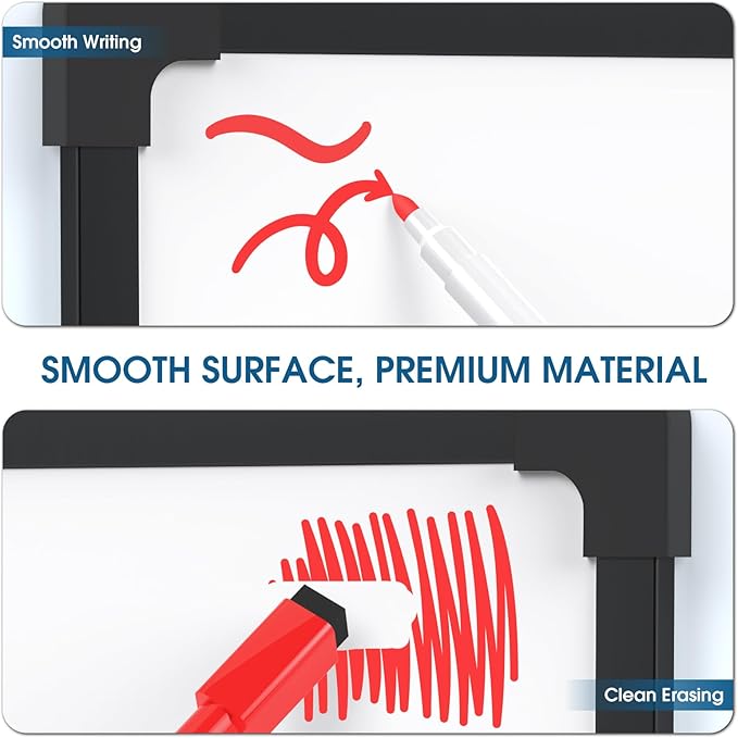- Unique Design and Versatility: This 36x24-inch whiteboard features a unique double-sided design crafted with high-quality materials such as a black aluminum frame ensuring durability and stability. Its versatile nature allows for various uses including writing doodling note-taking and information display making it suitable for home office classrooms and more.