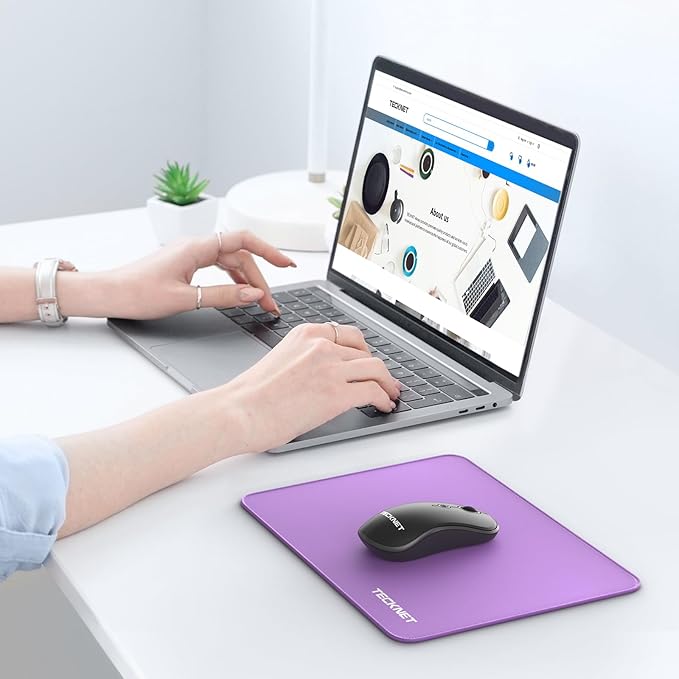 TECKNET Mouse Pad with Anti-fray Stitchin, Waterproof Surface & Non-Slip Rubber Base with Stitched Edges Gaming Mouse Mat for Laptop,Compatible with Laser and Optical Mice - Purple