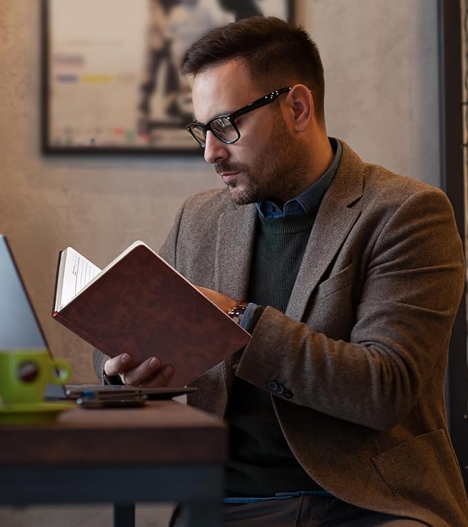 - 【Wide Usage】This leather bound journal for men women is perfect for office, business work, school, or personal use. Its premium quality, combined with the included pen set, makes it suitable for professionals, students, and creative individuals in any setting. From boardrooms to classrooms and home, this notebook is your trusted companion for capturing ideas, taking notes, and unleashing your imagination. The diary journal is idea for a special gift you can share with your friends and family.