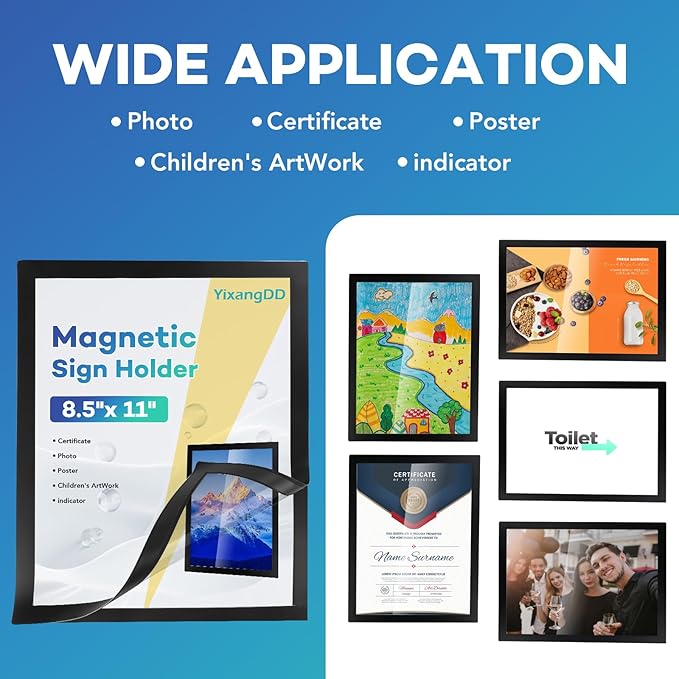 - 【Wide Range Of Uses】This magnetic sign holder displays certificates, document notices, reminder signs, drawings,price lists, business hours, notes, posters and other information for offices, factories, homes, stores, restaurants,schools, corridors and other places. Also great for displaying photos and artwork at home.