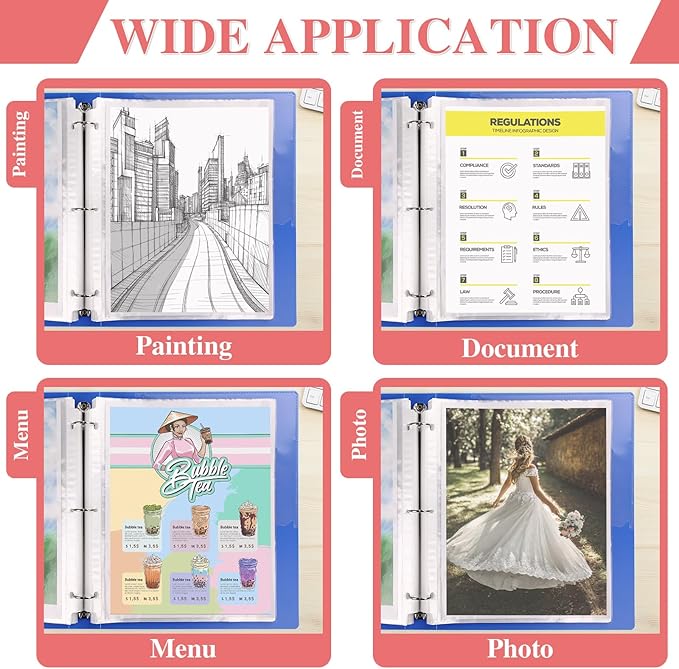 - Easy to use: Wide loading binder sleeve opening makes it easy to keep documents, copy paper, photo paper, records, recipes, references, business documents and photos inside the protective sleeve.