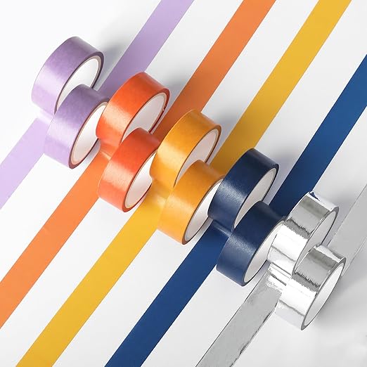 - The tapes showcase a palette inspired by the beauty of fall, including vibrant oranges, deep blues, and metallic accents, making them ideal for scrapbooking, journaling, or decorating.
