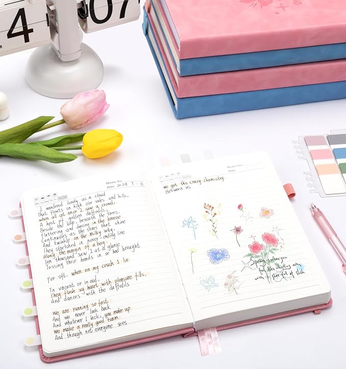 - 【Hardcover Leather&Elegant Design】This lined notebook features a high-quality faux leather cover. The gorgeous "FLOWER" pattern provides a premium look and comfortable feel; The hardcover better protects the pages, combined with sturdy binding, giving you a high-quality writing experience.