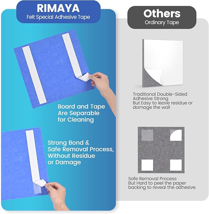 - 【Strong Adhesive & Easy to Stick and Peel】:Equipped with special adhesive tape, our cork boards stick securely to your wall and can be peeled off safely without leaving any residue or causing damage. The adhesive tape is separable from the corkboard, enabling you to remove and reinstall the panels as needed, even after cleaning.