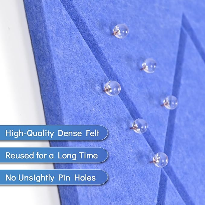 - 【Safe and Durable】:Made from high-quality recycled polyester, our felt board panels are safe, odorless, noise reduction, and non-flammable. Lightweight yet sturdy, they securely hold pins without falling off, adding a stylish and modern touch to any room.