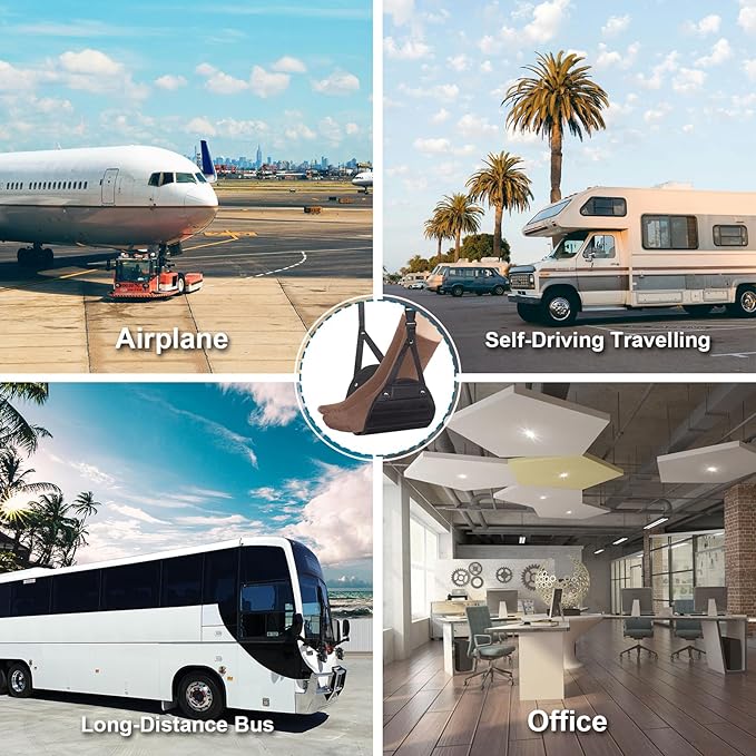 - Widely Used : The leg rest for airplane travel is a must for travel essentials, suitable for airplanes, trains, cars, etc. The foot hammock for plane travel is also a good helper for home and office. No matter where you are, you can relax your feet and legs and get rid of fatigue.