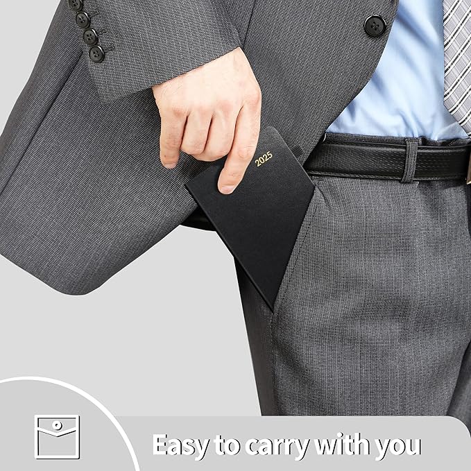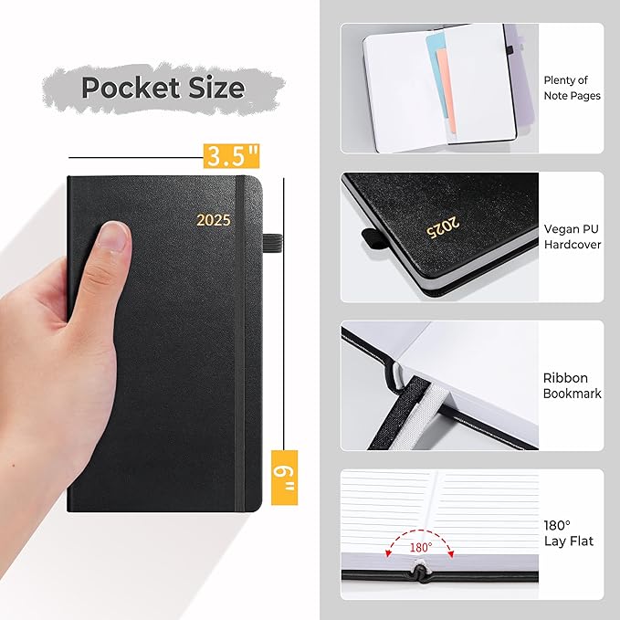 SUNEE 2025 Pocket Weekly Planner for Purse 3.5" x 6" - 12 Month (January 2025 - December 2025), Pocket Size Planner, Hardcover, Notes, Pocket, 100 GSM Paper, Black