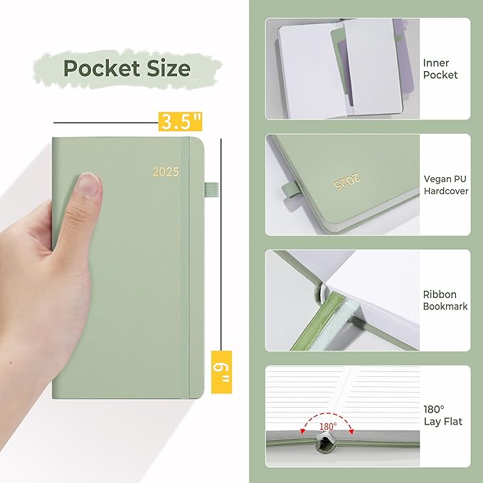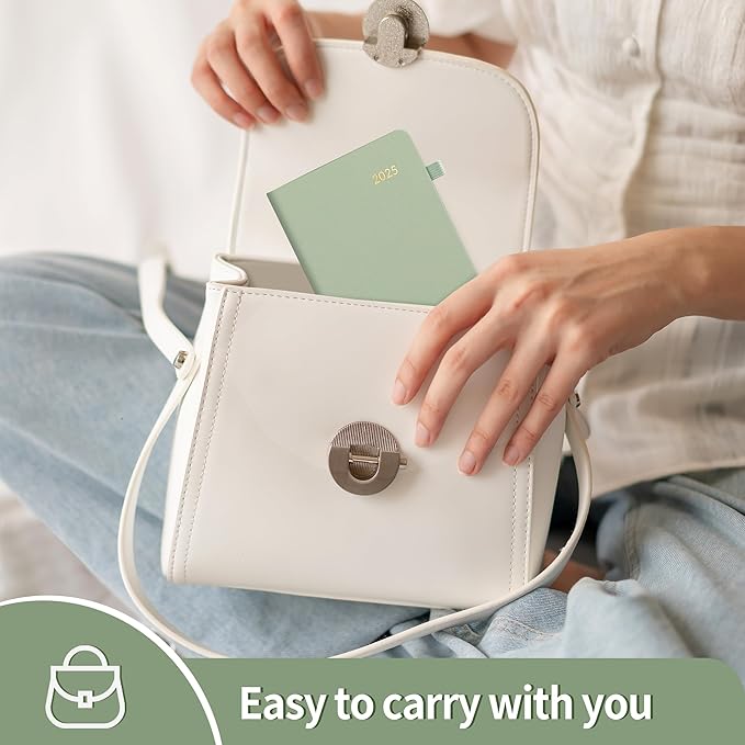 SUNEE 2025 Pocket Weekly Planner for Purse 3.5" x 6" - 12 Month (January 2025 - December 2025), Pocket Size Planner, Hardcover, Notes, Pocket, 100 GSM Paper, Sage Green