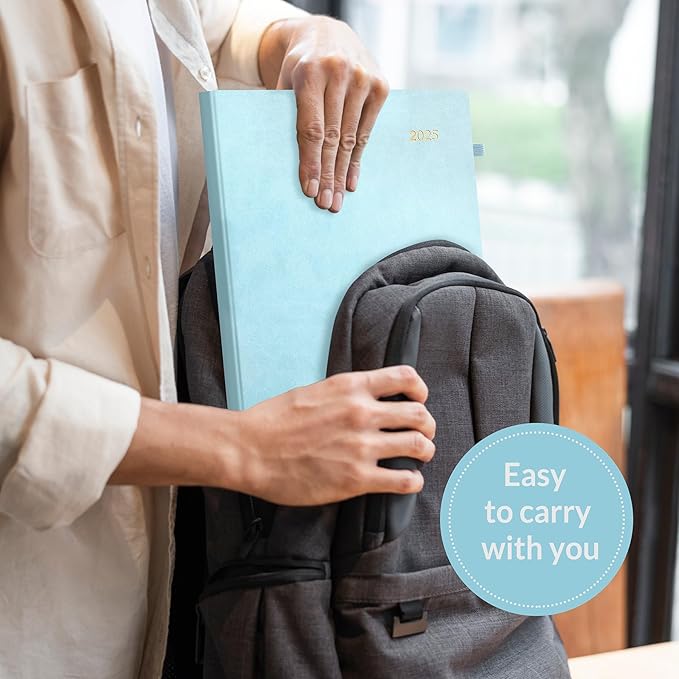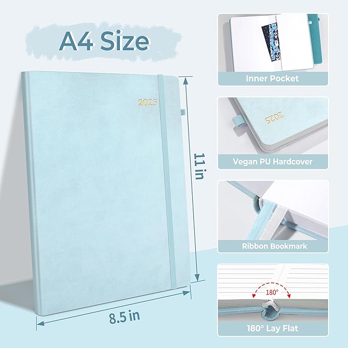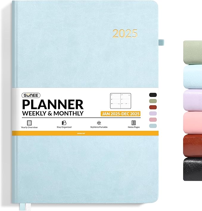 SUNEE 2025 Weekly & Monthly Hardcover Planner 8" x 11" - 12 Month (January 2025 - December 2025), Small Hardcover Planner, Pocket, Notes, 100 GSM Paper, Grey Blue