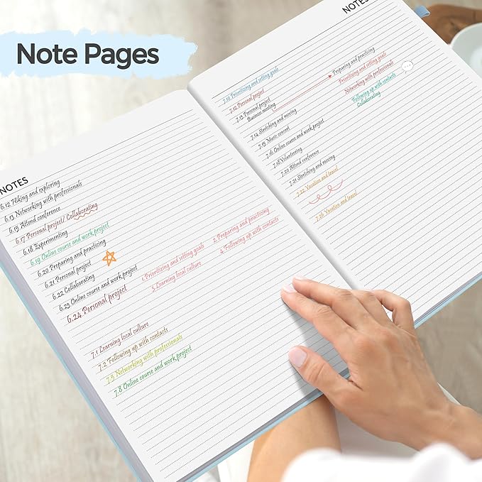 - Additional Features - The weekly planner includes 2025-2027 calendars, holiday lists, contact pages, notes pages, important dates, and US time zone map.