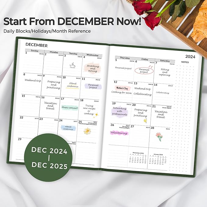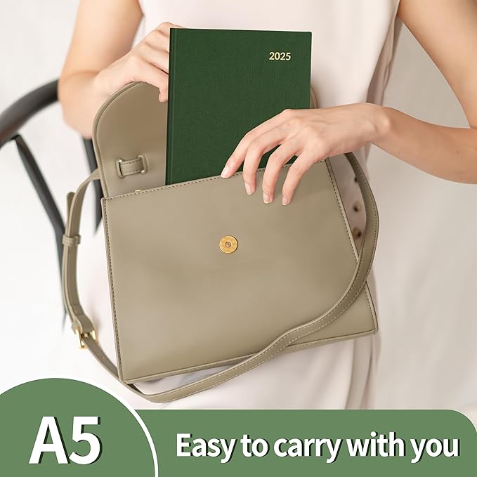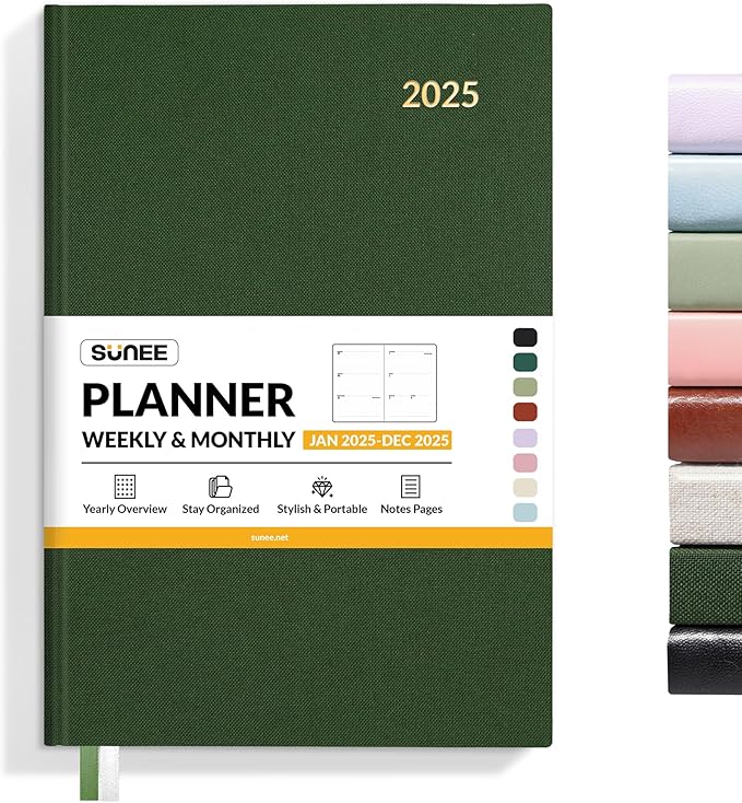 SUNEE 2025 Weekly & Monthly Hardcover Planner 5.5" x 8.3" - 12 Month (January 2025 - December 2025), Small Hardcover Planner, Pocket, Notes, 100 GSM Paper, Deep Green