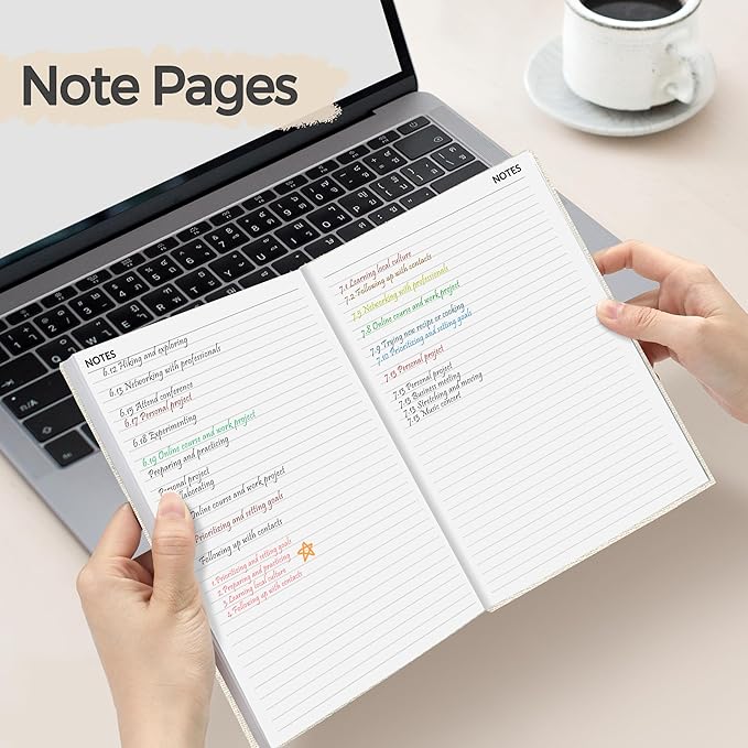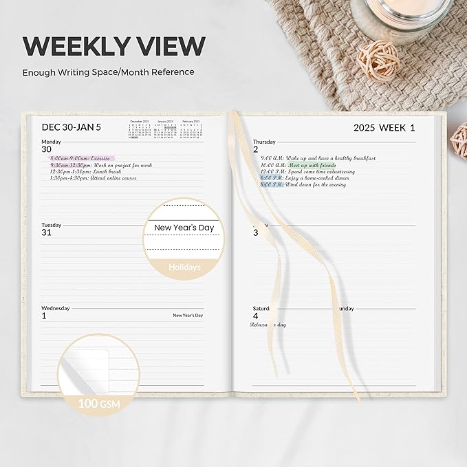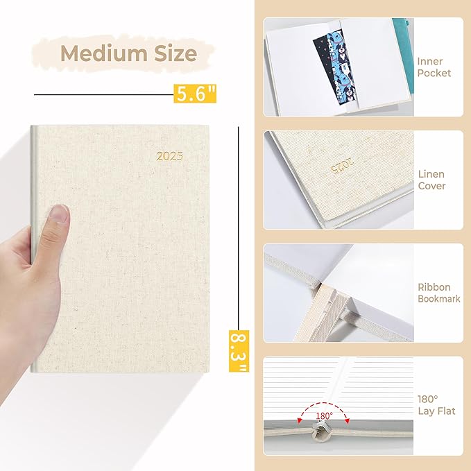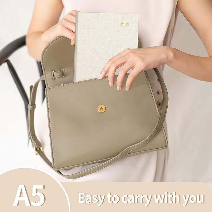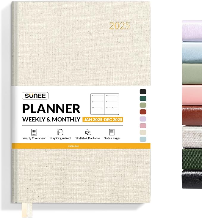 SUNEE 2025 Weekly & Monthly Hardcover Planner 5.5" x 8.3" - 12 Month (January 2025 - December 2025), Small Hardcover Planner, Pocket, Notes, 100 GSM Paper, Beige