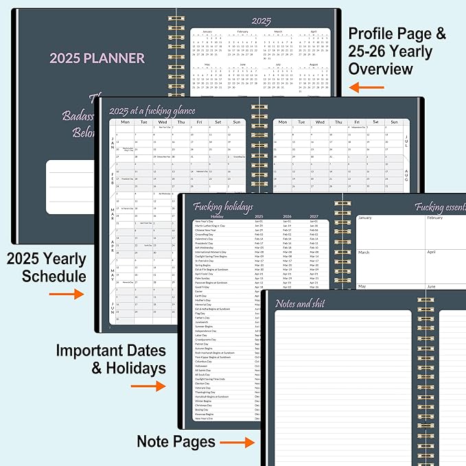 2025 Fuck It Planner for Tired-Ass Women, 6.4" x 8.3", 12 Months Funny Weekly Organizer With Sweary and Badass Affirmation, White Elephant Gifts for Adults Funny, JAN - DEC 2025, Black