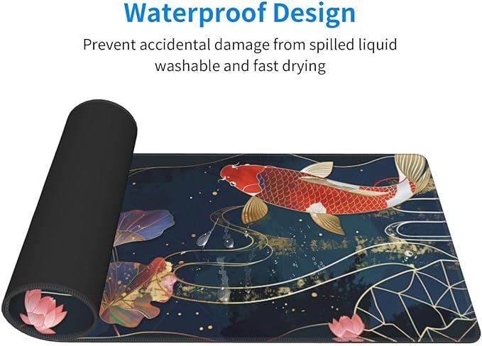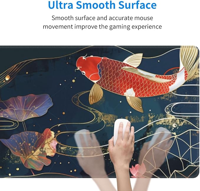 Gaming Mouse Pad Desk Pad,Extended Big Mouse Pad,31.5x11.8 Inch Long Computer Keyboard Mouse Mat Mousepad with 3mm Non-Slip Base and Stitched Edge for Gaming and Office… (koi)