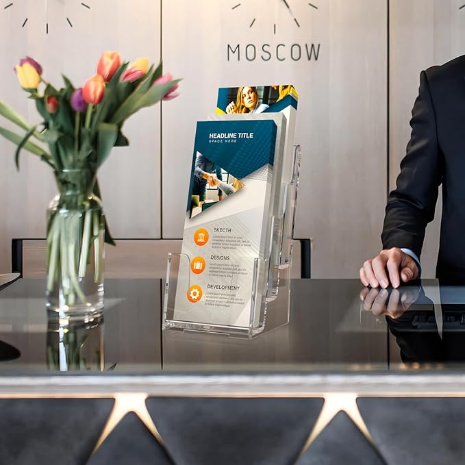 - MULTIPURPOSE: Our 3 tier brochure organizer fits up to 4 inches wide regular size materials. You can place your pamphlets, company brochures, newsletters, publications in this 3-tier rack for people to see and take.