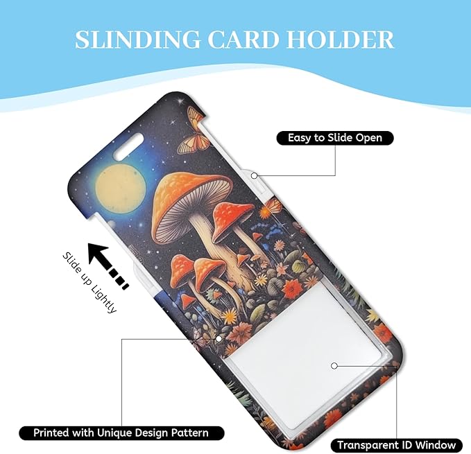 - 【Unique Design】This mushroom lanyard with id holder features unique arts: a country night scene with mushrooms, butterflies and the moon as beautiful accents, which adds happiness to your life and work. Our lanyard with id badge holder is available in a range of vibrant colors and boasts a distinctive design, ensuring that it not only catches the eye but also adds a touch of style to your attire.