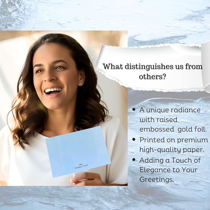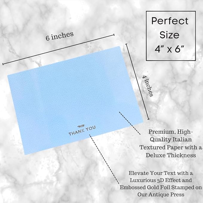 RUN2PRINT (36 Pack Thank You Cards With Envelopes & Stickers - Elegant Light Blue - Emboss Gold Foil Pressed - Blank Notes Wedding, Bridal, Baby Shower, Business and Formal All Occasion Cards