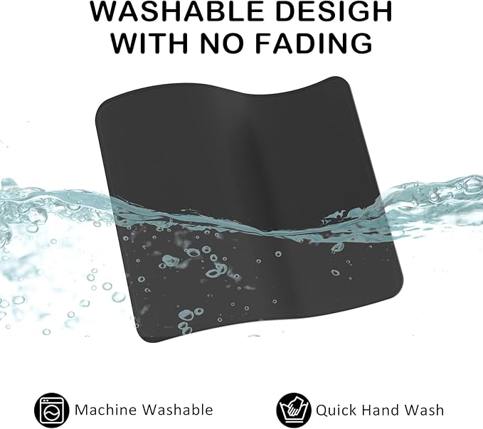 - Non-Slip Rubber Base--Designed with a high-density non-slip rubber base, this mousepad stays firmly in place on any surface. It provides a stable and smooth tracking experience, preventing any unwanted movements during intense gaming sessions or precision tasks.