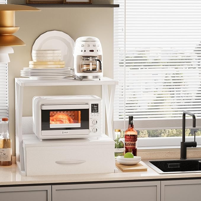 aboxoo Printer Stand for Desk with Storage Drawer, 2 Tier Desktop Or Under Desk Shelf, Multi-Purpose Desk Organizer for Home Office, fit Fax Machine/3D Printer/Scanner, White