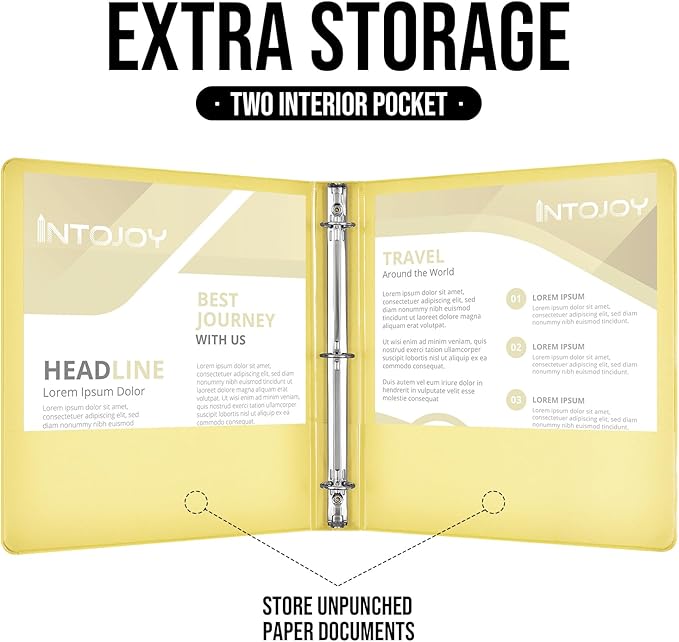 - Easy To Use: IntoJoy 1 inch binder feature three secure rings, your papers will stay neatly in place, preventing any loss or damage. The easy-to-open rings make adding or removing sheets a breeze, so they don't get scattered everywhere.