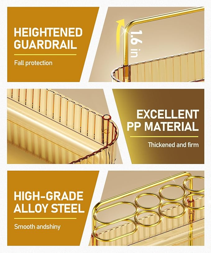 - Stable and sturdy: Bathroom counter organizers and storage tray has 3 additional fulcrums, stable and does not shake. The metal rod is upgraded and thickened, sturdy and durable, strong support