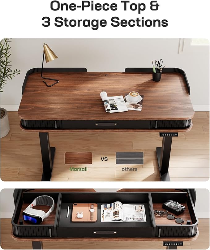 Marsail Electric Standing Desk Whole-Piece Desktop 55 x 28 Inches Height Adjustable Desk with 3 Drawers Home Office Table with 3 Memory Preset
