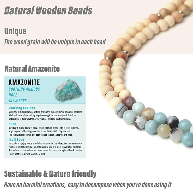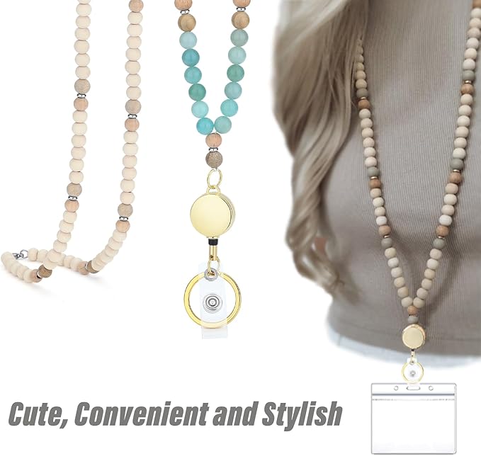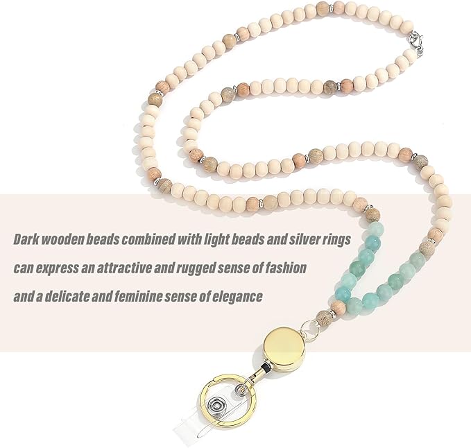 - Premium Quality - The cute lanyard for id badges is made from 8mm natural wooden beads and 8mm genuine Amazonite, with stainless steel lobster clasp and key ring. Every natural bead is high quality natural bead and has been carefully selected manually one by one.