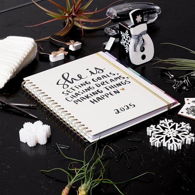 - EASY ORGANIZATION: Stay organized with pages that help you plan every aspect of each month. Each colored tab has an amazing quote along with the month and year. Following the tab, a monthly overview page for to-dos, birthdays, important dates, goals and reminders help you keep track of your month. A two-page month calendar spread, followed by a weekly agenda that lays out the days of the week on two-page spreads is helpful for the little details. A page for notes at the end allows for extras.