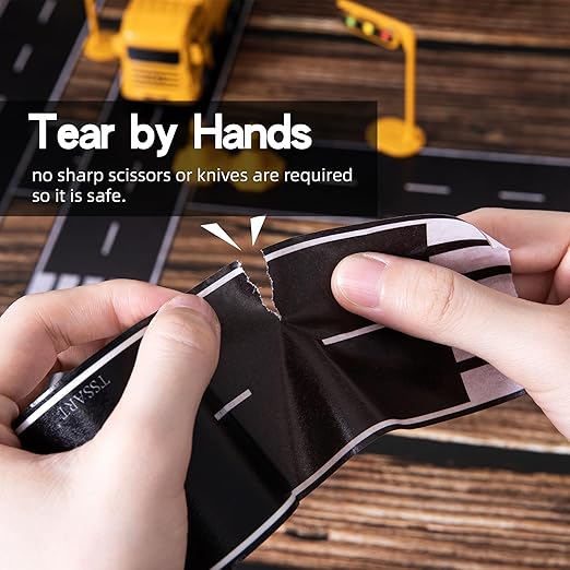 - TSSART Roadway Tape - Made of washi paper, attached with premium adhesive, non-toxic, easy to remove and leave no residue, measures 2.4 inch wide x 40 feet long, great gadget for kid toys and party decor.