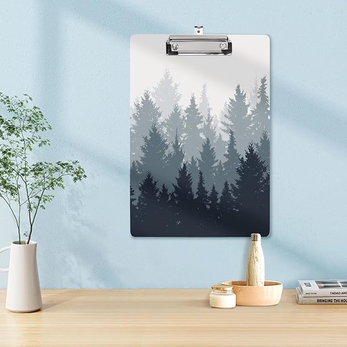 WAVEYU Fashion Cute Clipboard, Decorative Office School Hardboard Wood Nursing Clip Board for Standard A4 Letter Size for Students, Women, Men and Kids, 12.5"x 9", Forest Pattern
