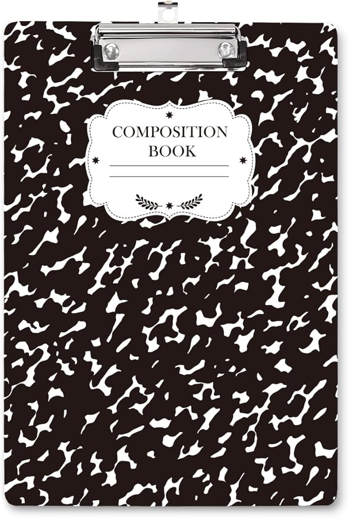 WAVEYU Fashion Cute Clipboard, Decorative Office School Hardboard Wood Nursing Clip Board for Standard A4 Letter Size for Students, Women, Men and Kids, 12.5"x 9", Black+White02