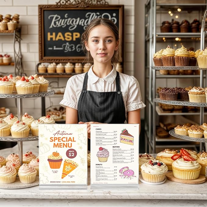 - MULTIFUNCTIONAL DISPLAY STAND---Simply insert the acrylic panel into the base to display your sign. They can display signs, menus, flyers, brochures, etc., and can be used in home, restaurant, office, trade exhibition, bar counter, vendor event.